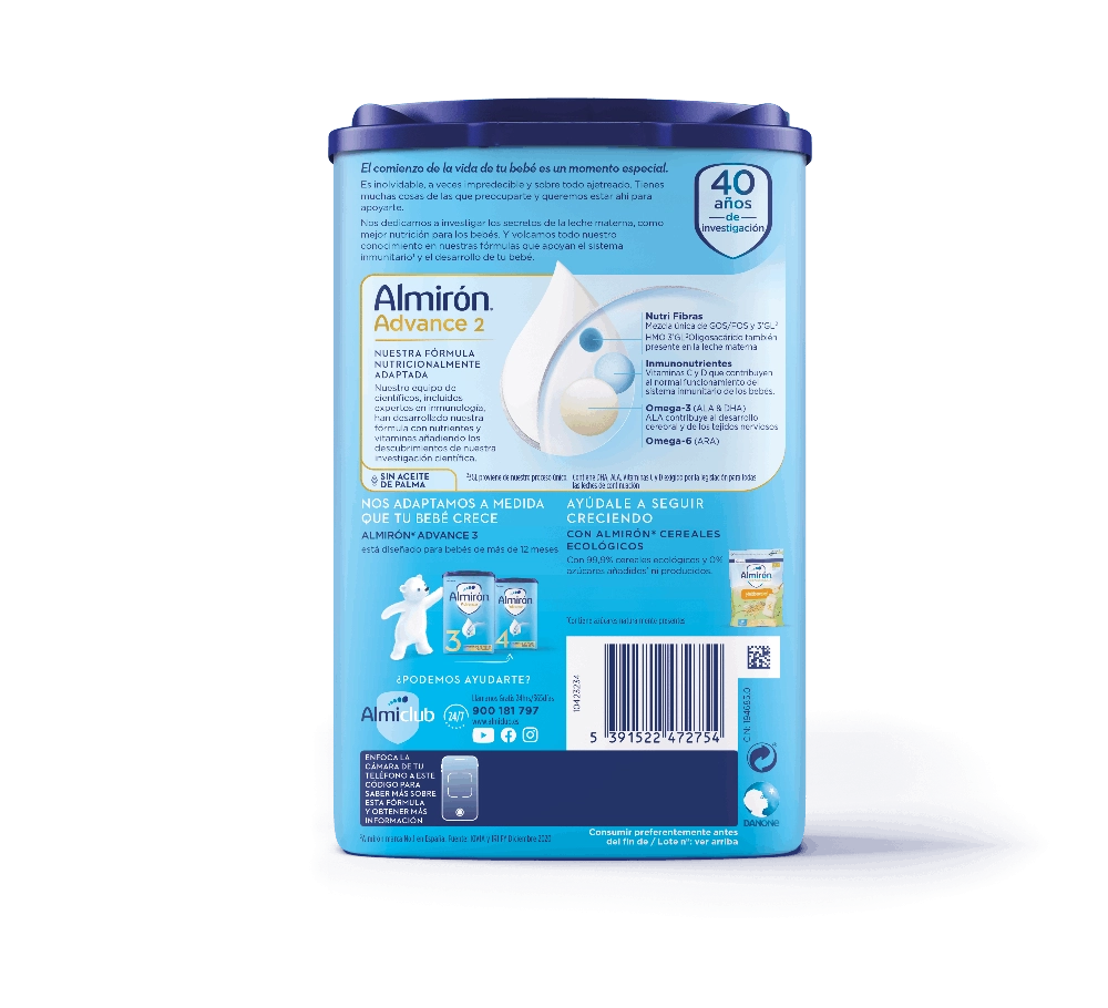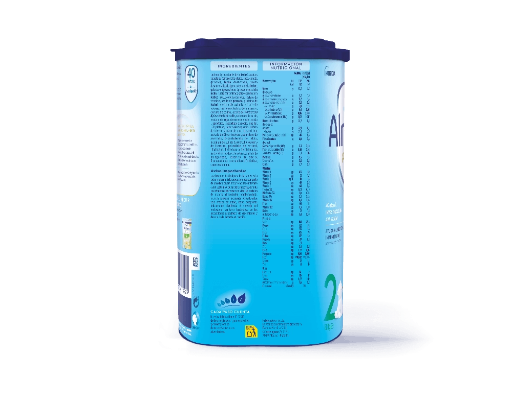 - Omega 3, DHA procedente del pescado,Omega 6 (ARA) y además contiene ALA, que contribuye al desarrollo cerebral y de los tejidos nerviosos.