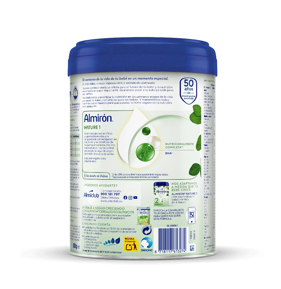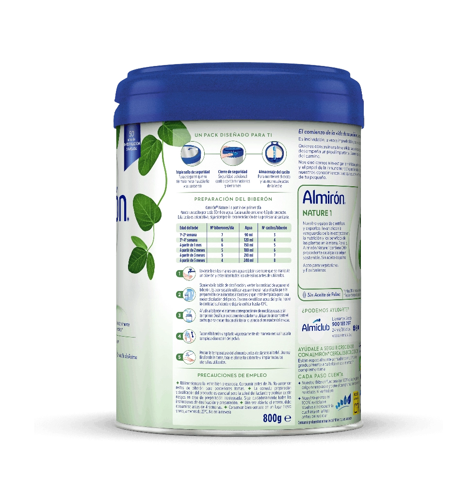 Almirón Nature 1, 800g Leche de inicio para bebés a partir del primer día.